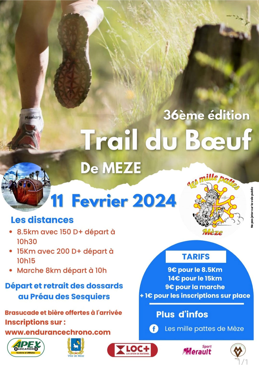 Le trail du bœuf revient en 2024 avec 2 nouveaux parcours de course inédits. Rendez-vous le dimanche 11 février pour parcourir 8,5 ou 15km dans la campagne mézoise. Traditionnelles brasucade et bière offertes à l’arrivée.