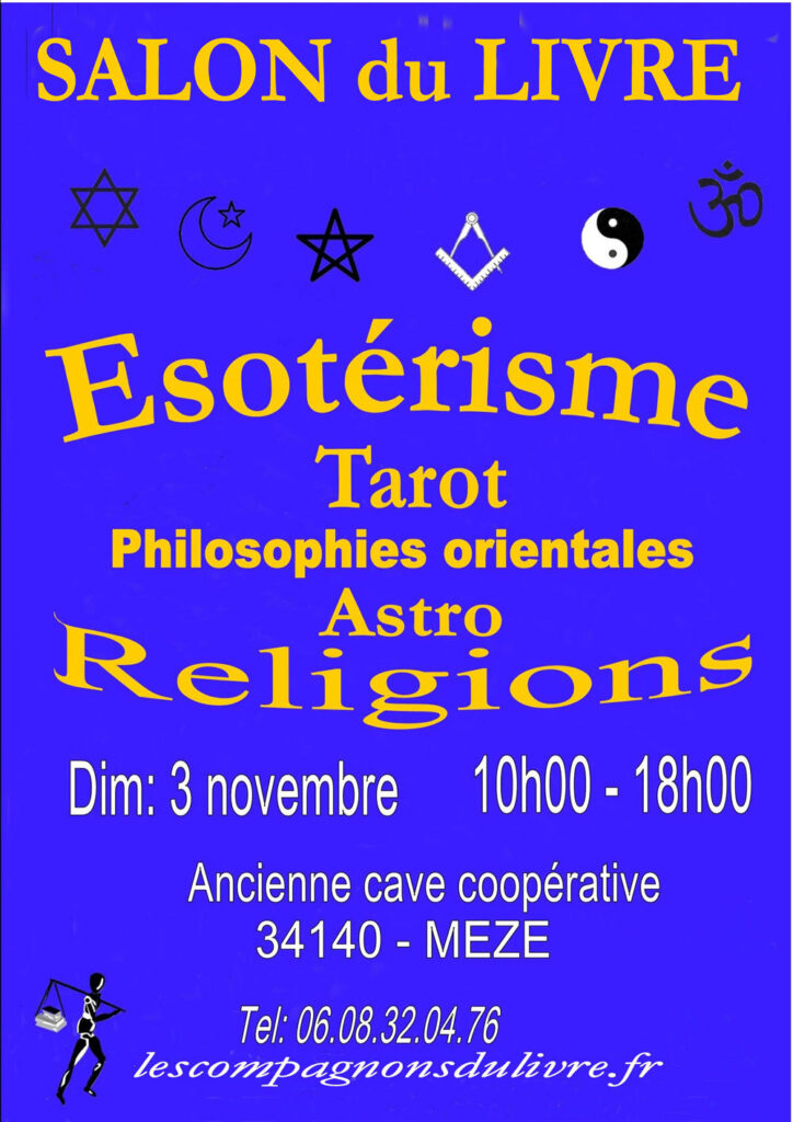 L’association « Les Compagnons du livre », avec le soutient de la Ville de Mèze, organise le 4e Salon de l’ésotérisme regroupant les : religions, ésotérisme, tarot, astrologie, philosophies orientales, sciences occultes et parallèles, F.M., ontologie …