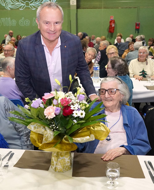 Après son mot de bienvenue, le maire a remis un bouquet aux doyennes de l’assemblée, Rosette Nogues et Josiane Martinez qui comptent chacune 95 printemps.