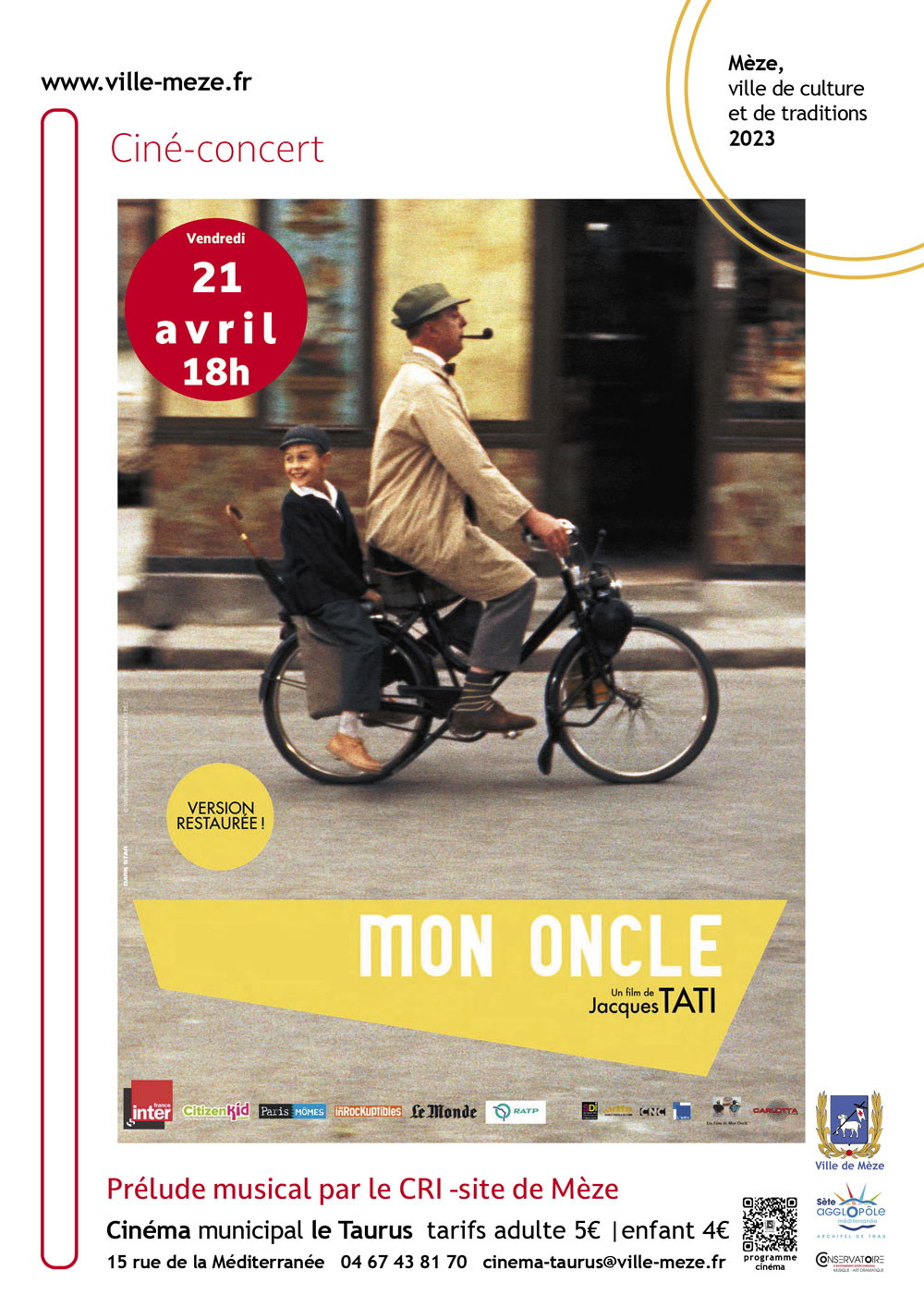 au cinéma municipal Le Taurus Rue de la MéditerranéeCiné-pitchoun 24 déc. 10h30 film + atelier « Maracas de noël » sur inscription à cinema-taurus@ville-meze.fr Tarifs : enfants 4€ | adultes 5€ Synopsis: Au cœur de l’hiver, la neige recouvre tout, et le silence s’installe doucement. L’hiver a sa propre musique : saurez-vous l’entendre ? Car c’est avec la musique que la magie de […]