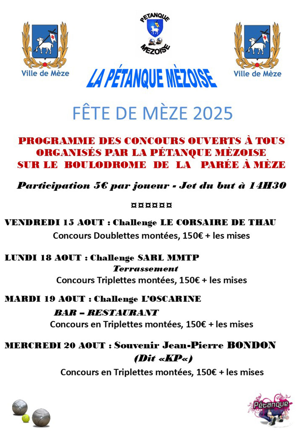 sur l'esplanade Yves PitrasantaLa Ville de Mèze donne rendez-vous aux Mézois samedi 5 septembre de 9h à 16h sur l’esplanade Yves Piétrasanta, pour la fête des associations.