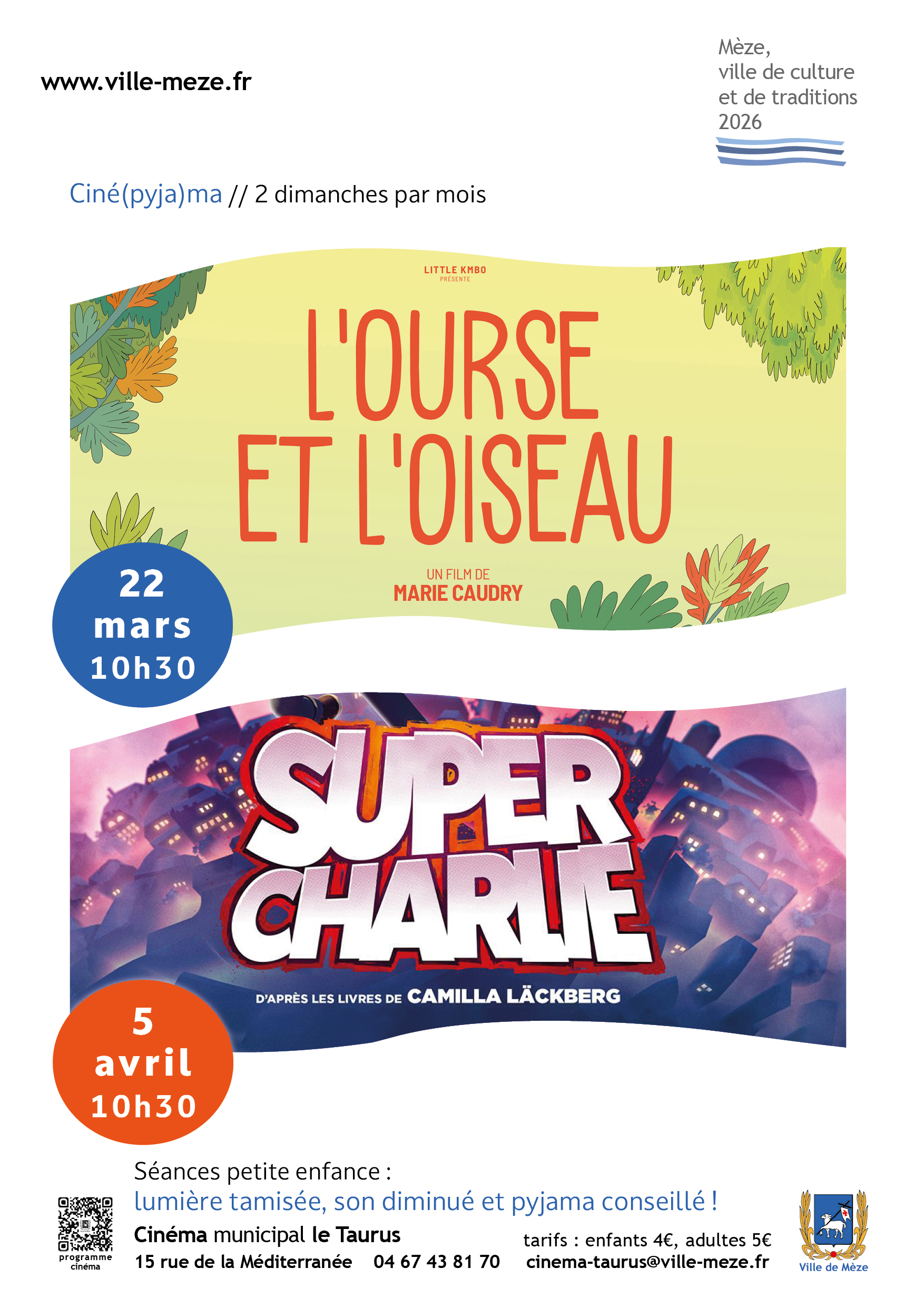 au cinéma municipal Le TaurusCiné-pitchoun: le 3 mars à 10h30 Tarifs: enfant: 4€ / adulte: 5€ Film + atelier "Laisse parler ton imagination" sur inscription à cinema-taurus@ville-meze.fr Synopsis: Avoir le trac avant de monter […]
