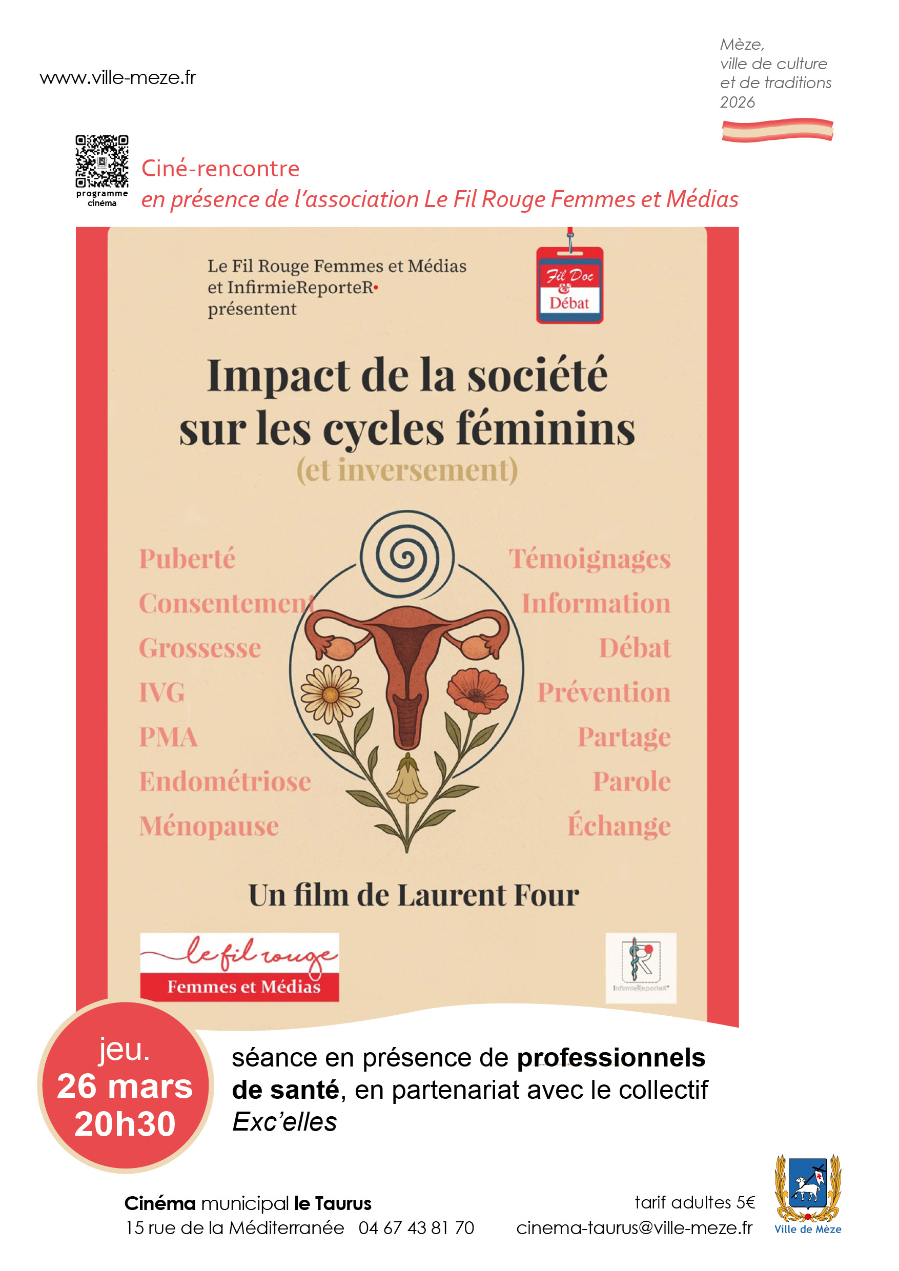 au cinéma municipal Le Taurus Rue de la MéditerranéeCiné-rencontre: L'Impact de la Société sur les Cycles Féminins et inversement. Projection en partenariat avec le collectif Exc'elles en présence de l'association Fil rouge Femmes et Médias. Synopsis: Ce film explore une large […]