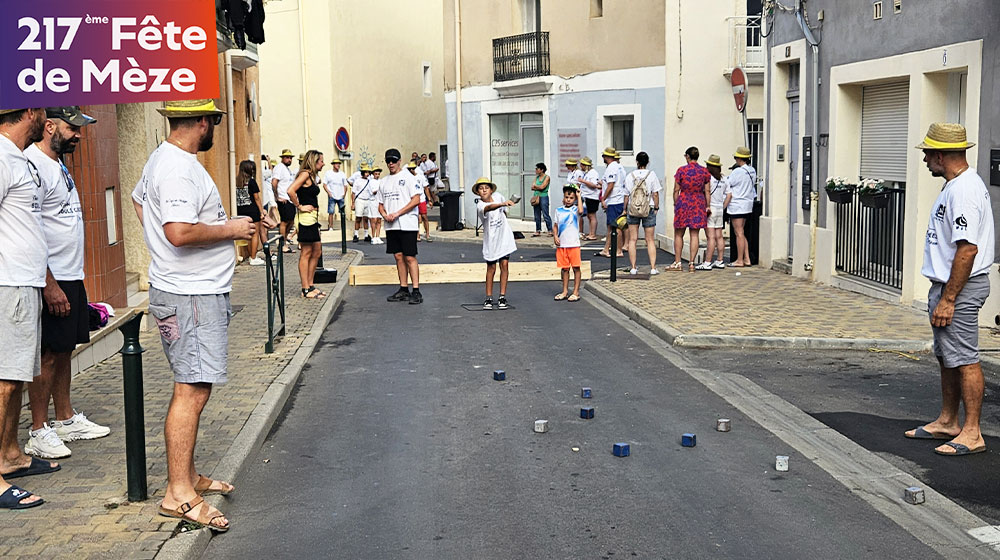 centre ville de MèzeTOURNOI DE BOULES CARRÉES Organisé par la Ville de Mèze en partenariat avec le « Gin Marina » et « 2MAD ». Centre-ville
