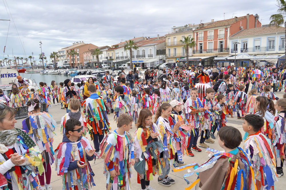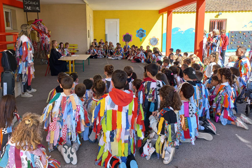 Jeudi 28 mars, la grande farandole des calandrons, accompagnée de classes de l’école Coty, du cercle occitan, des résidents de la Mas et des petitous du Relais Petite Enfance a envahi les rues de Mèze pour fêter carnaval. Le maire, Thierry Baëza, a accueilli le joyeux cortège à l’hôtel de Ville avant qu’il reprenne le chemin des halles et du marché au son de la musique traditionnelle du groupe « Lo chevalet de Cournonterral ».