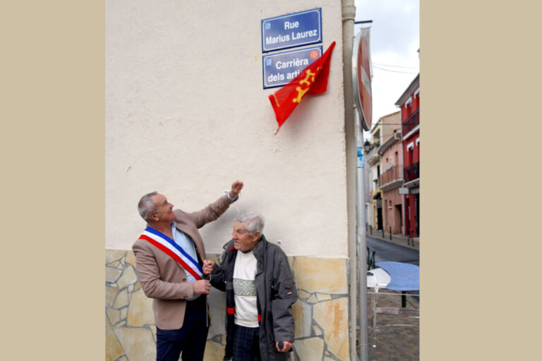 Désormais, sous la plaque de la rue Marius Laurez, figure celle, en occitan, rappelant que cette voie s’appelait jadis « Carrièra dels artistas » (rue des Artistes).La pose de cette plaque a donné lieu à une cérémonie particulièrement conviviale en présence du maire…