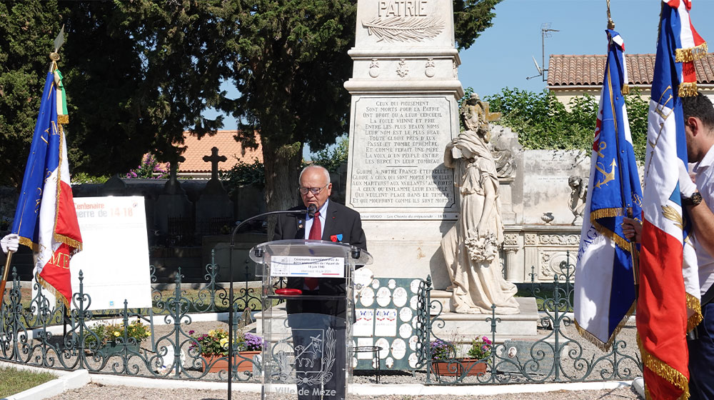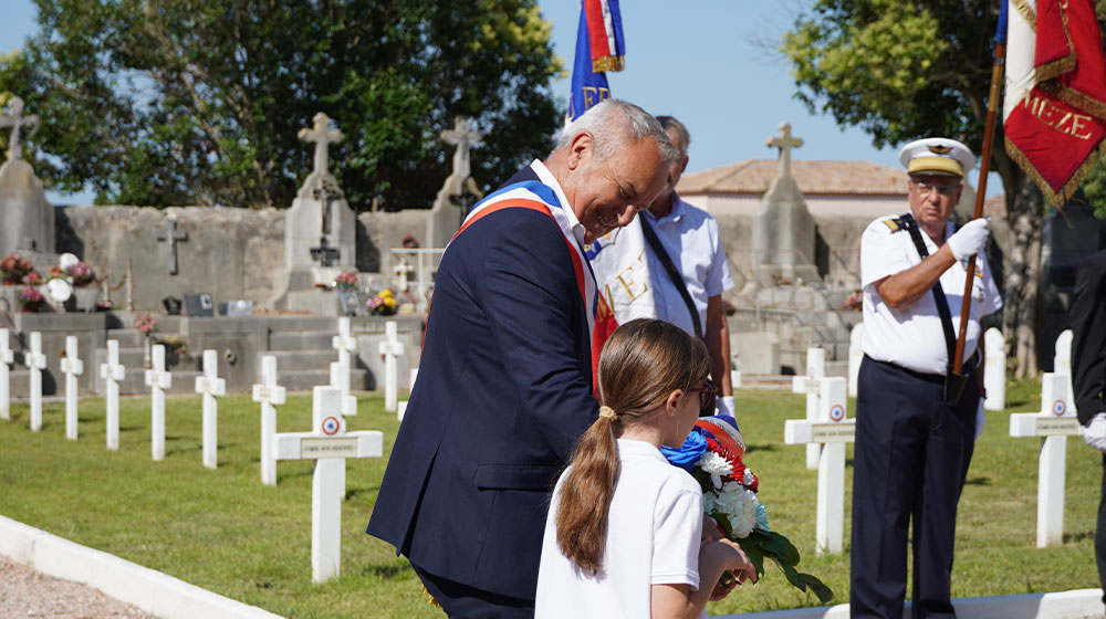 Mercredi 18 juin, au pied du monument aux morts, Thierry Baëza, maire de Mèze, Marcel Graine, conseiller délégué aux associations patriotiques, les membres du conseil municipal et du Conseil Municipal des Jeunes, les associations d’anciens combattants, les sapeurs-pompiers de Mèze, la SNSM, la police municipale, ont célébré la commémoration de l’Appel du 18 juin lancé par le Général de Gaulle il y a 85 ans, sur les ondes de la BBC.