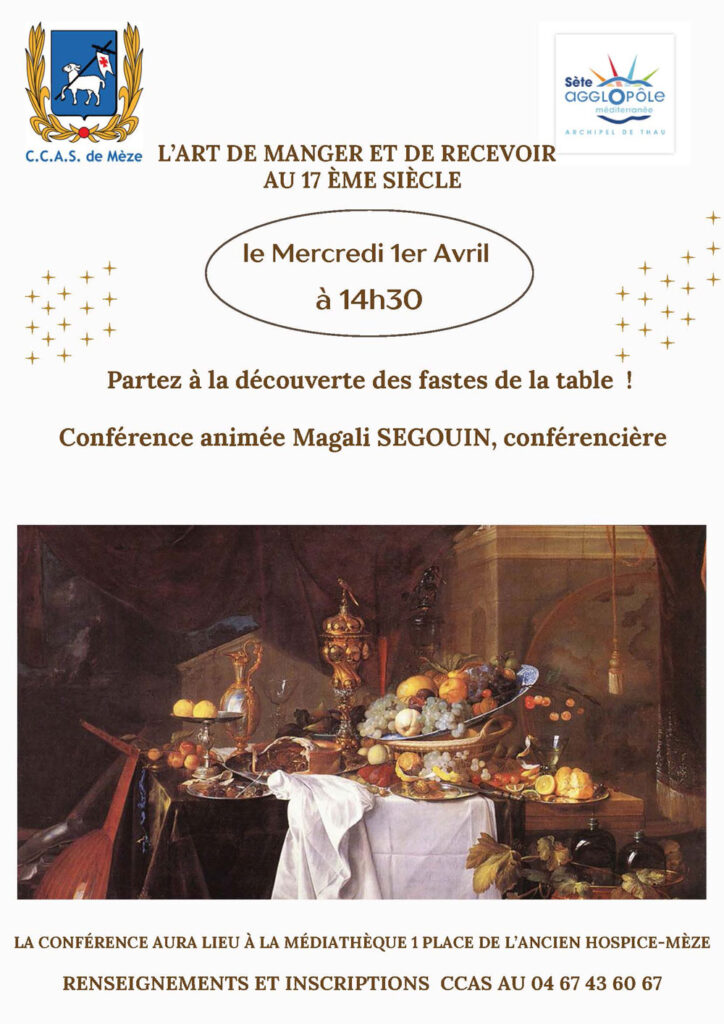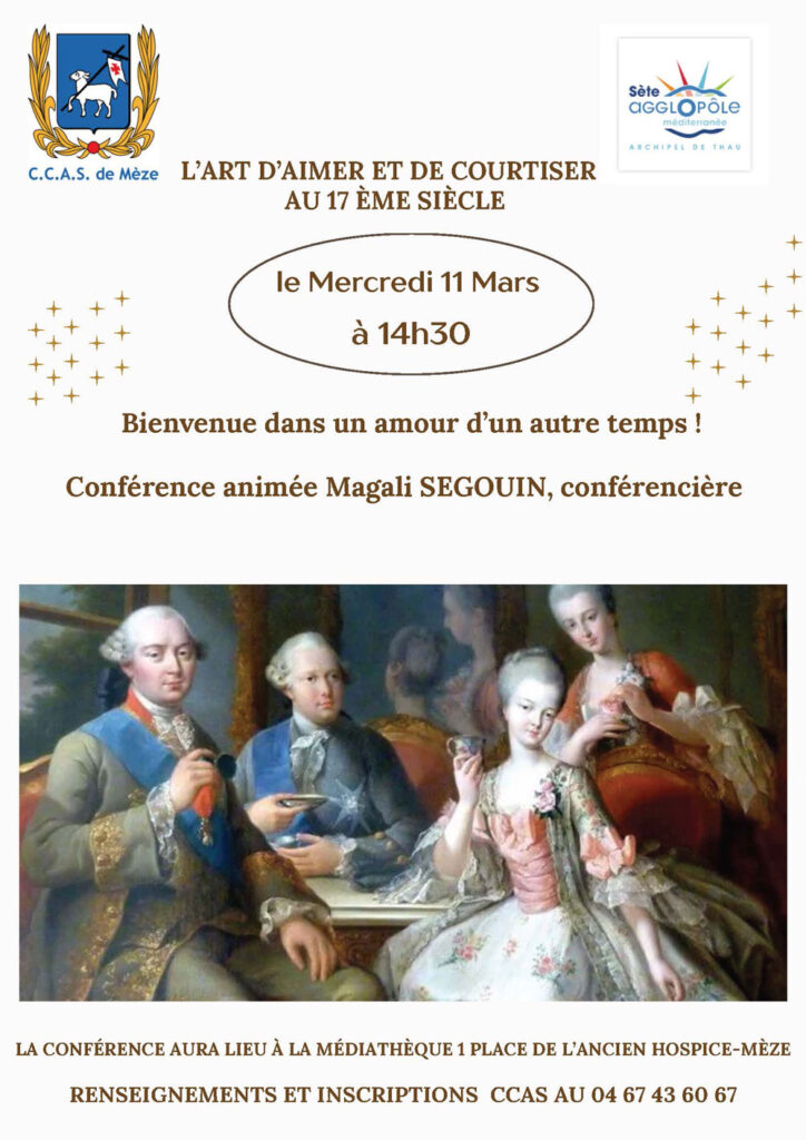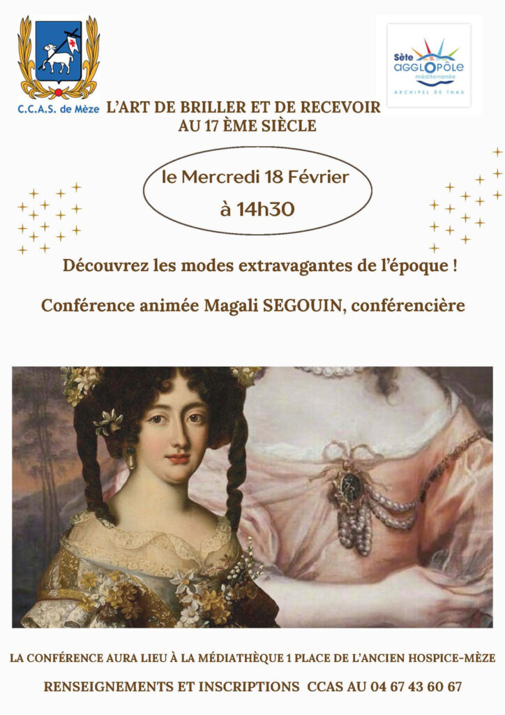 Le CCAS de la Ville de Mèze et la Médiathèque Andrée Chedid proposent un cycle de 3 conférences, animé par Magali Segouin, conférencière, consacré à l’art de vivre au XVIIᵉ siècle.