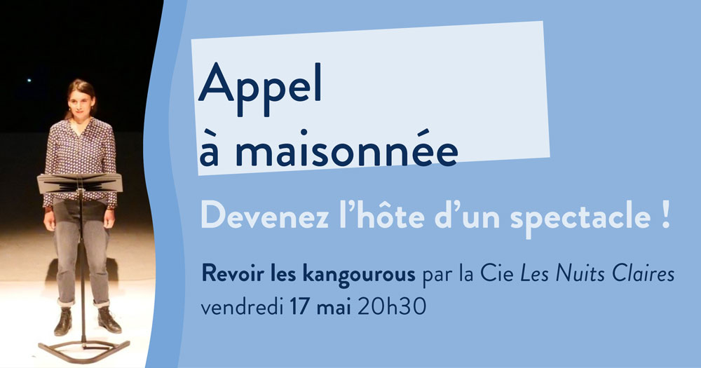 Devenez l’hôte d’une soirée de spectacle inédite, vendredi 17 mai, à 20h30 en recevant chez vous Revoir les kangourous de la compagnie Les Nuits Claires. Il s’agit d’une forme intimiste et courte (35 minutes).