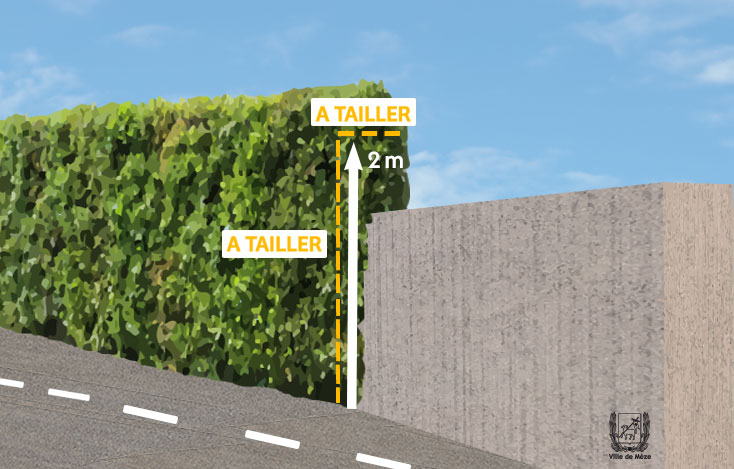 • Les haies doivent être taillées à l’aplomb du domaine public et leur hauteur doit être limitée à 2 mètres, voire moins là où le dégagement de la visibilité est indispensable, à savoir à l’approche d’un carrefour ou d’un virage.
