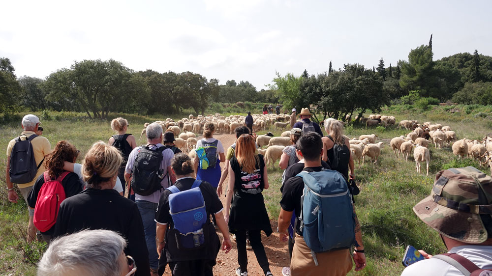 La transhumance est organisée depuis 10 ans par la Ville de Mèze avec le concours des communes de Villeveyrac, Poussan, Bouzigues et Loupian. cette marche d’une douzaine de kilomètres a permis aux participants de suivre le troupeau, d’admirer le formidable travail du chien chargé de regrouper les brebis et de discuter avec Michel, le berger, toujours ravi de promouvoir le pastoralisme.