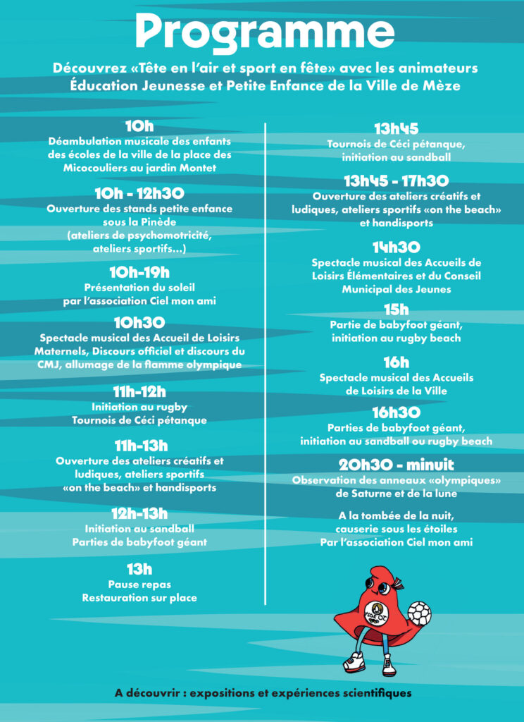 Spectacles et animations proposés par le service Éducation Jeunesse et Petite Enfance de la Ville de Mèze. Cet événement est l’aboutissement des projets collectifs menés toute l’année avec les jeunes mézois. Evénement soutenu par la Caf, Hérault sport et le comité départemental handisport.