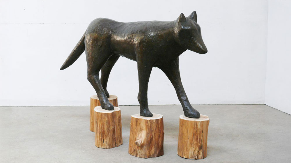 Marqué par son enfance dans l’Allier et son lien intime au bois, l’artiste façonne des œuvres où dialoguent le minéral, le végétal, l’animal et l’humain. Bois, acier et bronze sont travaillés en taille directe, assemblage ou moulage, donnant naissance à des sculptures puissantes et organiques. Loups, oiseaux et troncs-totems incarnent une nature à la fois majestueuse et fragile.