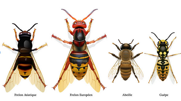 Frelons, guêpes, abeilles ou bourdons… les confusions entre ces insectes sont monnaies courantes. Pourtant, ils possèdent des caractéristiques physiques bien précises qui permettent de les différencier. Le possède un corps majoritairement noir mais avec quelques teintes jaunes ou oranges aux niveaux des extrémités. À l’inverse, le frelon européen se rapproche plutôt d’une guêpe avec des couleurs jaune clair, oranges et rouges. Le meilleur moyen de distinguer ces deux espèces est de regarder les pattes. Celles de l’Européen sont noires et rouges tandis que l’Asiatique a les pattes jaunes. Le frelon européen est un peu plus grand et les reines peuvent atteindre les 35mm.