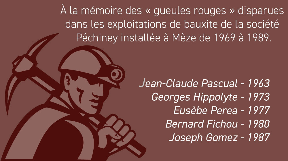 Pour mémoire, la mine de la Rouquette a été exploitée de 1969 à 1989. Quatre « gueules rouges » y ont perdu la vie : Georges Hippolyte en 1973, Eusèbe Perea en 1977, Bernard Fichou de Villeveyrac en 1980 ou encore Joseph Gomez de Loupian en 1987. Avant eux, Jean-Claude Pascual, un jeune Mézois avait succombé au fond de la mine de Cazouls-les-Béziers en 1963.
