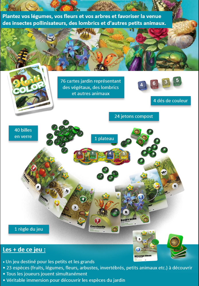 « L’idée d’HortiColor est de montrer que le jardin est un monde vivant à part entière, et que chaque geste compte pour favoriser un équilibre naturel. C’est en jouant qu’on apprend le mieux. Ce jeu contribue à éveiller une conscience écologique dès le plus jeune âge et permet aux enfants de découvrir comment coopèrent plantes, insectes et animaux, pour créer un jardin à la fois beau et durable. », explique Jean-Yves Kernel, directeur de Biotope Edition.