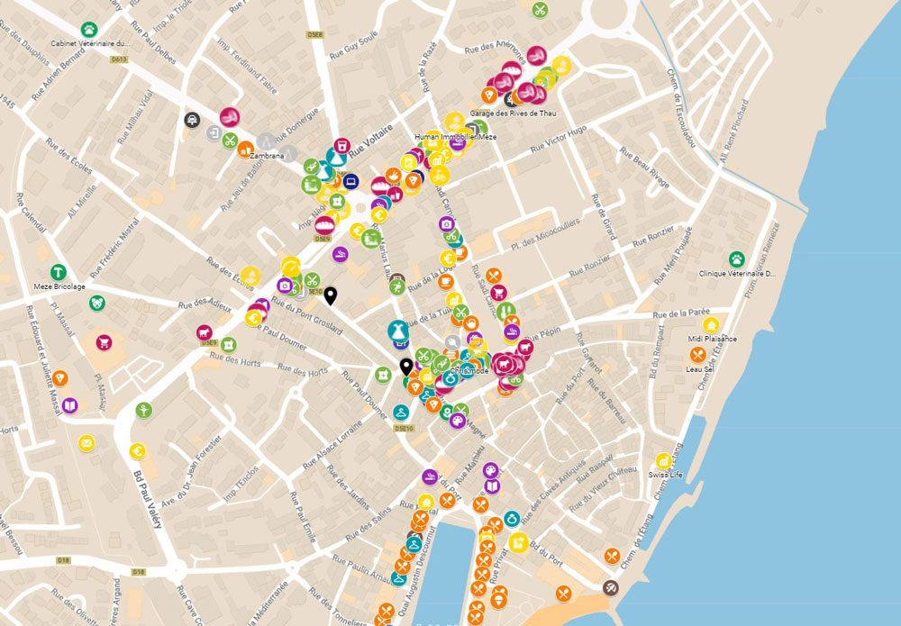 Pour figurer sur cette carte ou pour des mises à jour, envoyez vos informations à service.commerce@ville-meze.fr