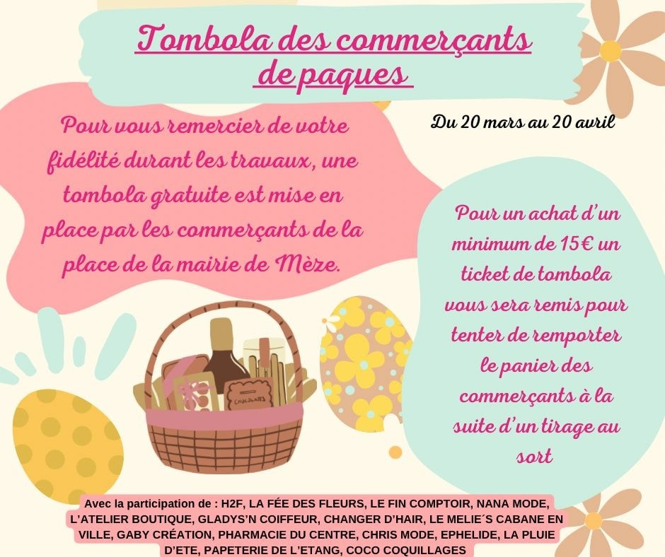 Jusqu’au 20 avril, pour tout achat d’un montant minimum de 15€ dans l’un des commerces participants, les clients recevront un ticket de tombola. Le grand gagnant remportera un panier garni regroupant des produits et services offerts par les commerçants, d’une valeur totale de 500€.