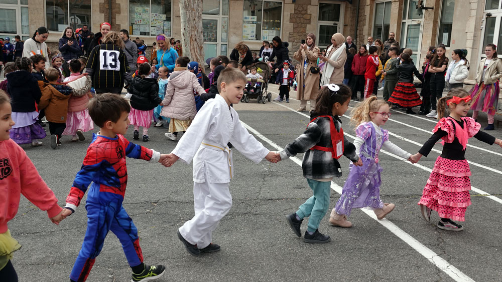 L’heure était à la fête, lundi 25 mars, pour les élèves de l’école maternelle Coty, de la crèche Claude Bastide, les assistantes maternelles du Relais Petite Enfance Nord Bassin de Thau et du Service d’Accueil Régulier Familial (SARF) « Les Petits Thau ». Une troupe colorée de petits pirates, pompiers, clowns, policiers, princesses, indiens, cow-boy, judokas, footballeurs, coccinelle… a fêté carnaval. Le joyeux défilé a rejoint la cour de l’école Clemenceau pour entamer une farandole avec les élèves de primaire. Avec la participation de l’association des parents d’élèves « Les tigres de Clemenceau ».