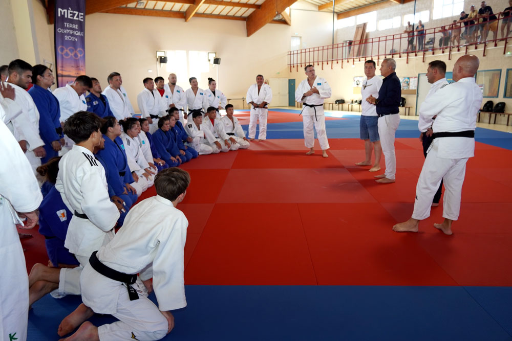 A cette occasion, Thierry Baëza, maire de Mèze, aux côtés du directeur technique Stéphane Traîneau et de Nicolas Archimbeau, adjoint au sport, a pu remercier la délégation pour la confiance qu’elle a accordée à la Ville de Mèze et encourager toute l’équipe Kazakh pour les JO.