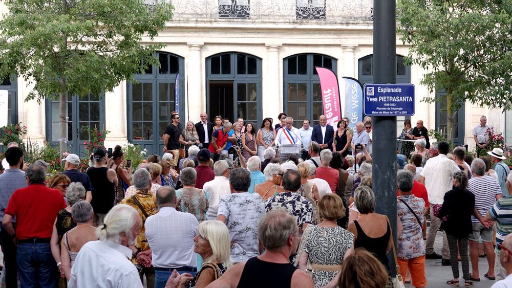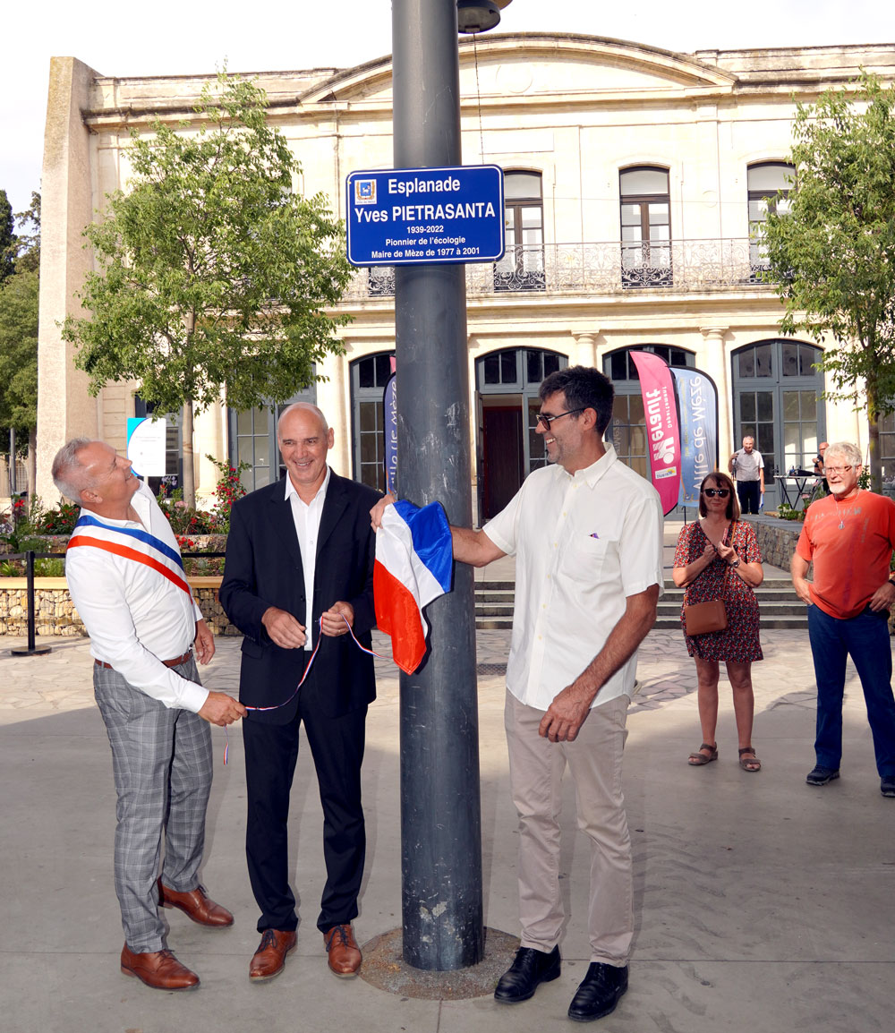 Les nouveaux aménagements de l’esplanade Yves Piétrasanta ont été inaugurés le 23 juin par Thierry Baëza, maire de Mèze, entouré d’Hussein Bourgi, sénateur de l’Hérault, d’Audrey Imbert, conseillère départementale et du conseil municipal.