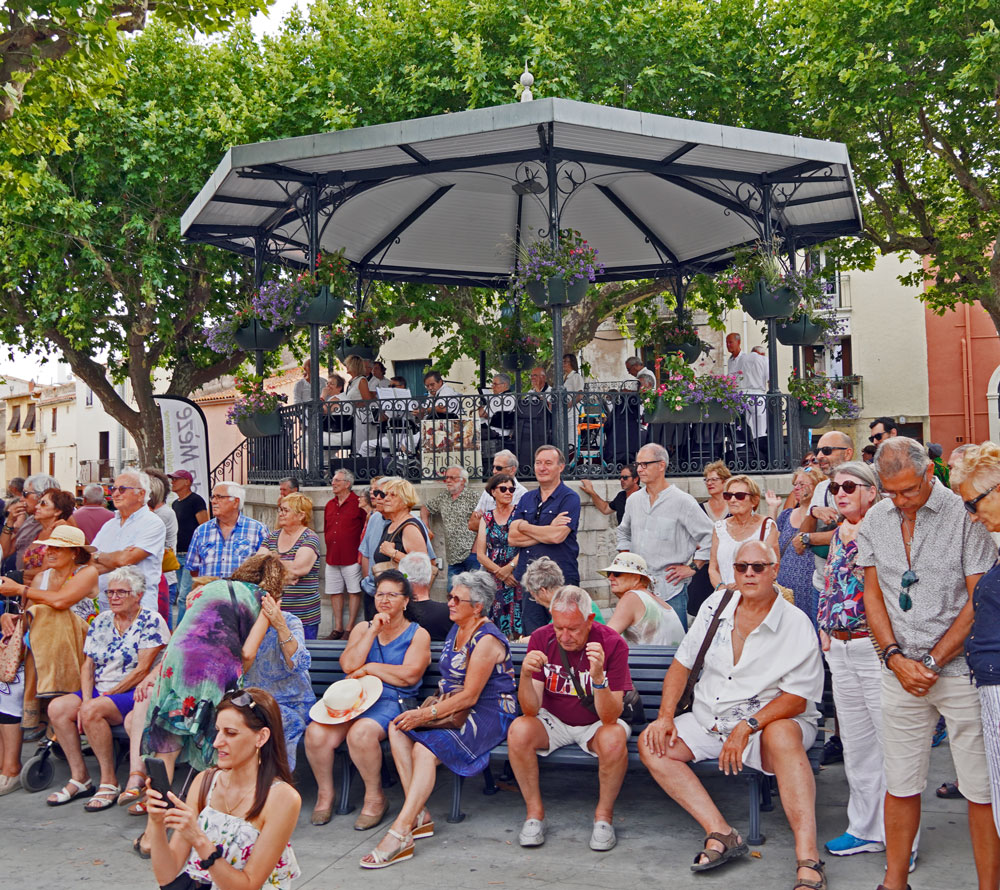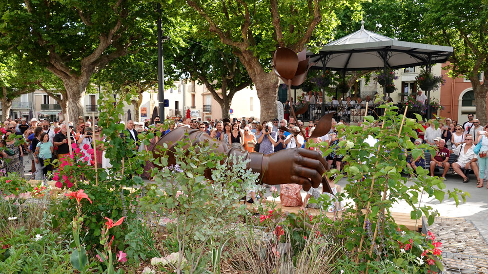Les travaux de valorisation de l’esplanade ont aussi été mis à profit pour redonner un coup de jeune au kiosque à musique, qui fête, cette année, son 130e anniversaire. La toiture en zinc et les murs ont été rénovés. Plafond, armature, rampes et rambardes ont été entièrement repeints. Audrey Imbert, conseillère départementale et adjointe à l’aménagement du territoire s’est particulièrement investie dans ce projet : « Il faut en particulier saluer le travail des services municipaux qui ont réalisé les aménagements, remercier le Département de l’Hérault pour sa contribution financière déterminante et féliciter Nicolas Jouas pour sa superbe sculpture ».