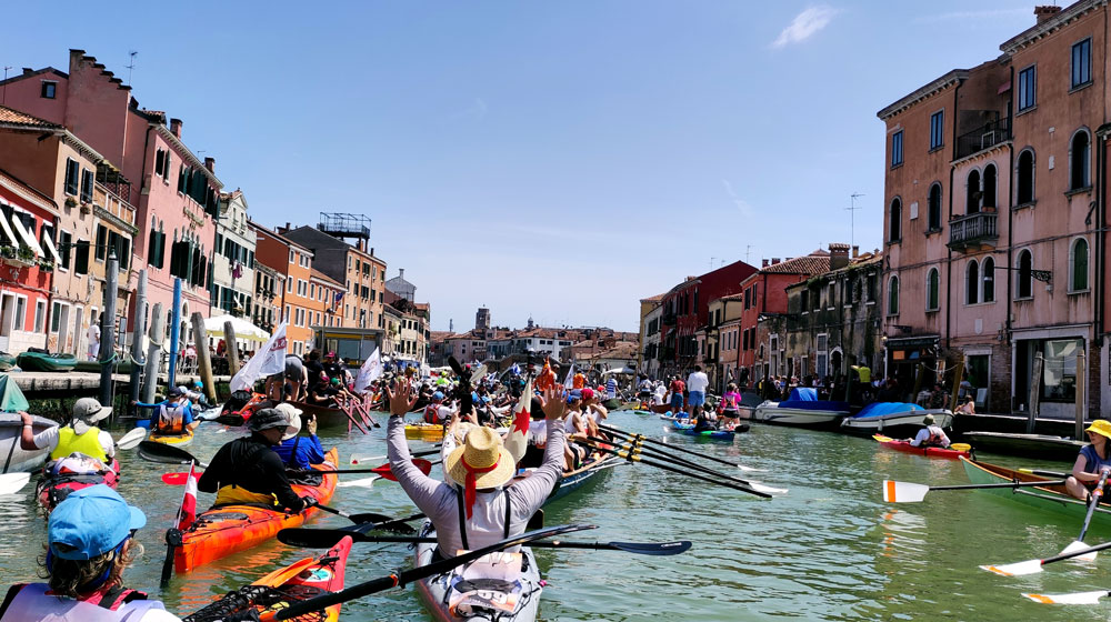 8000 rameurs, 2000 embarcations dans la lagune et les canaux de Venise, depuis 50 ans, la Vogalonga s’est imposée comme un rassemblement mythique de bateaux à propulsion humaine.