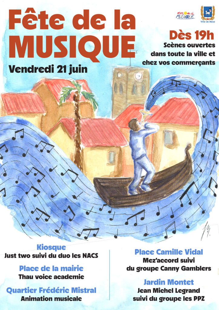 Vendredi 21 juin, pour la fête de la musique, la Ville de Mèze organise des scènes ouvertes dans toute la ville sur la place de la mairie, sur le kiosque, au jardin Montet, résidence Frédéric Mistral et place Camille Vidal.