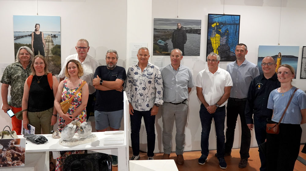 Le 3 juin, Thierry Baëza, maire de Mèze, et Philippe curé, adjoint à la culture, ont accueilli une délégation d’élus du Cotentin, accompagnée du président du Comité Régional de la Conchyliculture de Méditerranée (CRCM) et de techniciens de Sète Agglopôle Méditerranée, sur l’exposition du temps de l’étang, « De l’eau à la bouche, dessine-moi l’ostréiculture », au chai de Girard.