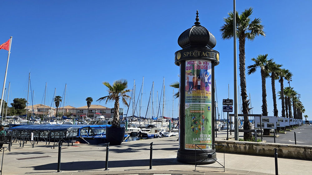 Une deuxième colonne Morris a été installée sur le port, rue des Tonneliers, afin de promouvoir la riche programmation culturelle et festive de la Ville de Mèze. Ce nouvel équipement moderne et attractif, fruit d’un partenariat avec l’entreprise de mobilier urbain JC Decaux, permet de diffuser des informations sur tous les événements à venir. Spectacles, festivals, animations : ne loupez plus aucun événement de l’agenda mézois. La première colonne Morris, installée fin 2024, se situe sur l’esplanade Y. Piétrasanta.