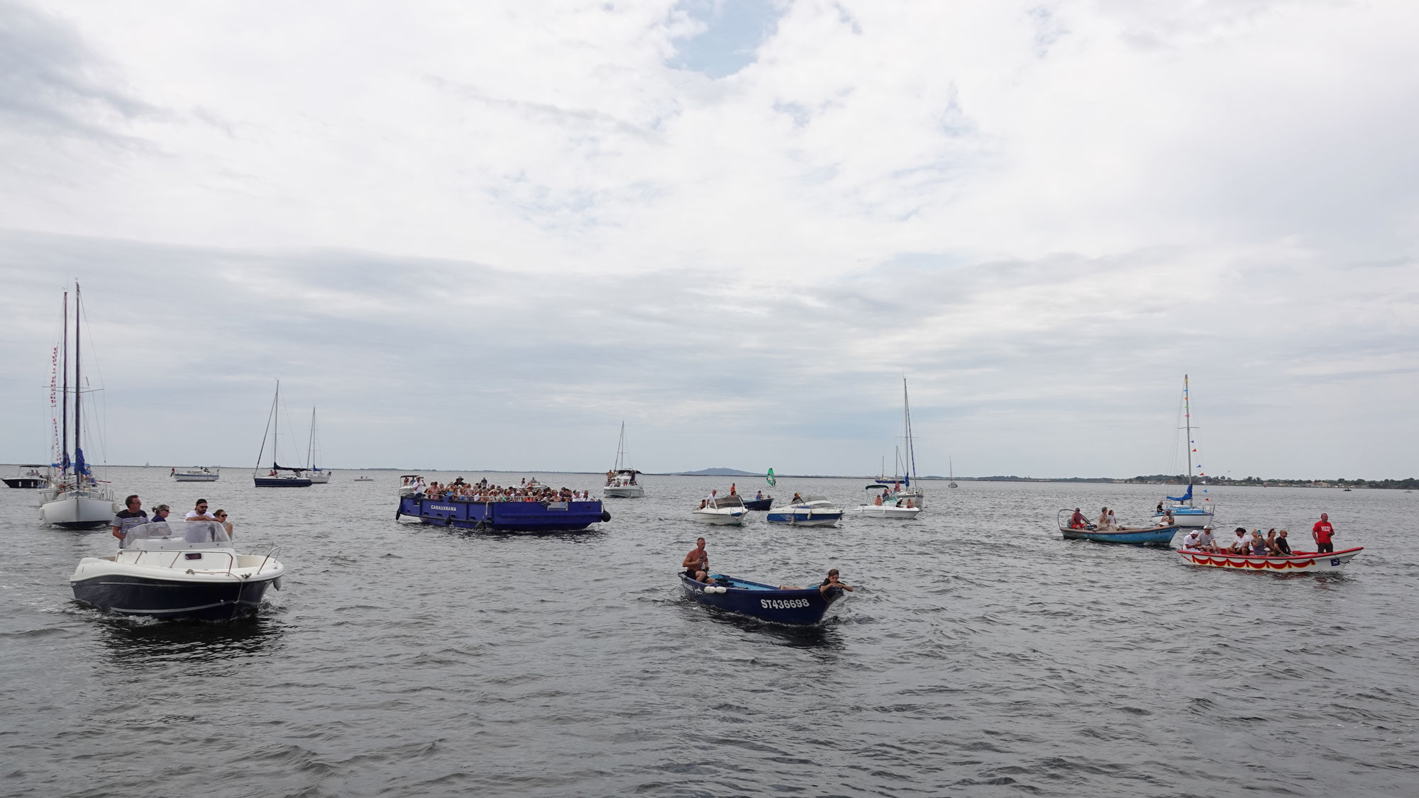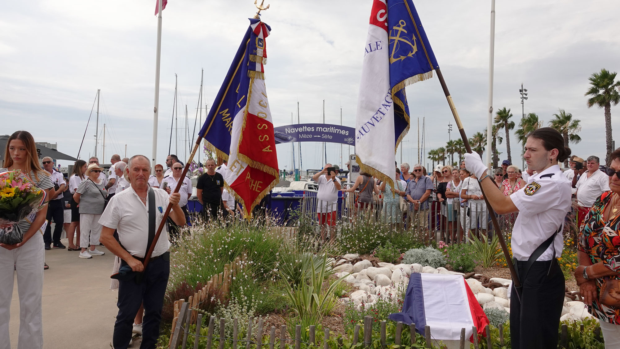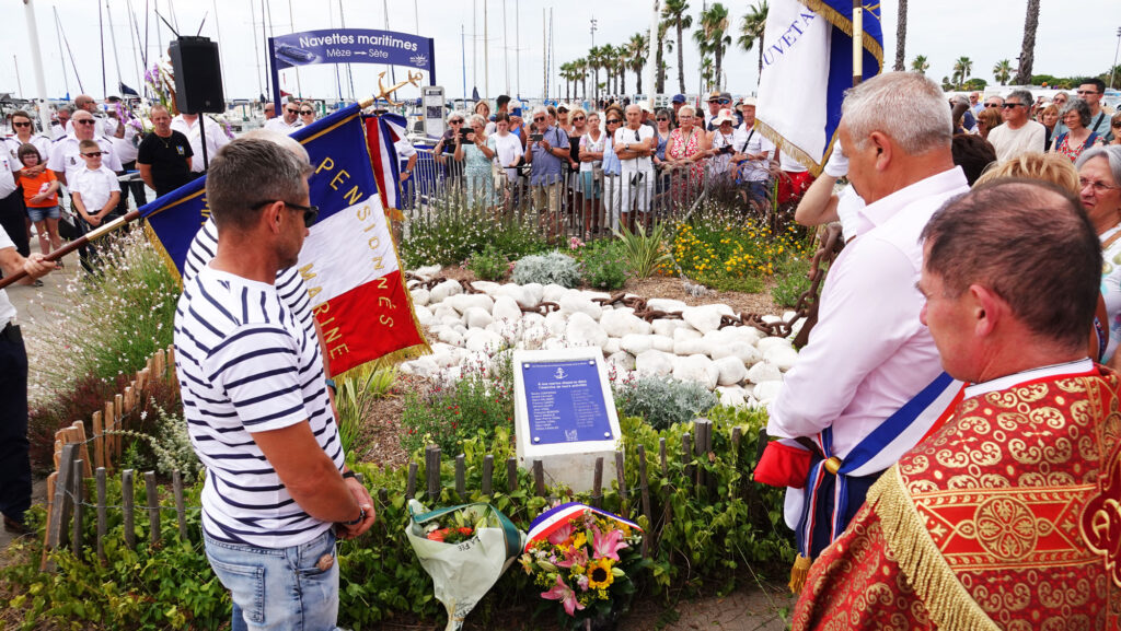 Le cortège a ensuite embarqué sur l’étang pour un dernier hommage rendu en mer, avec un dépôt de gerbes.