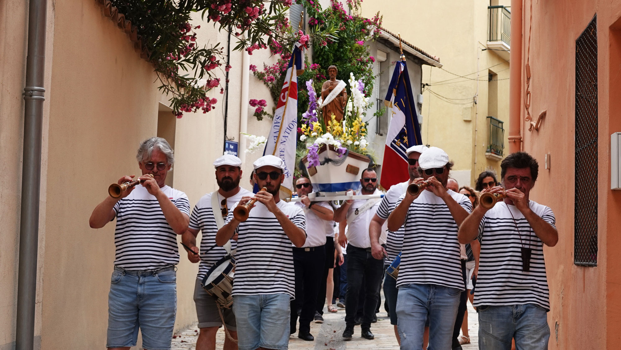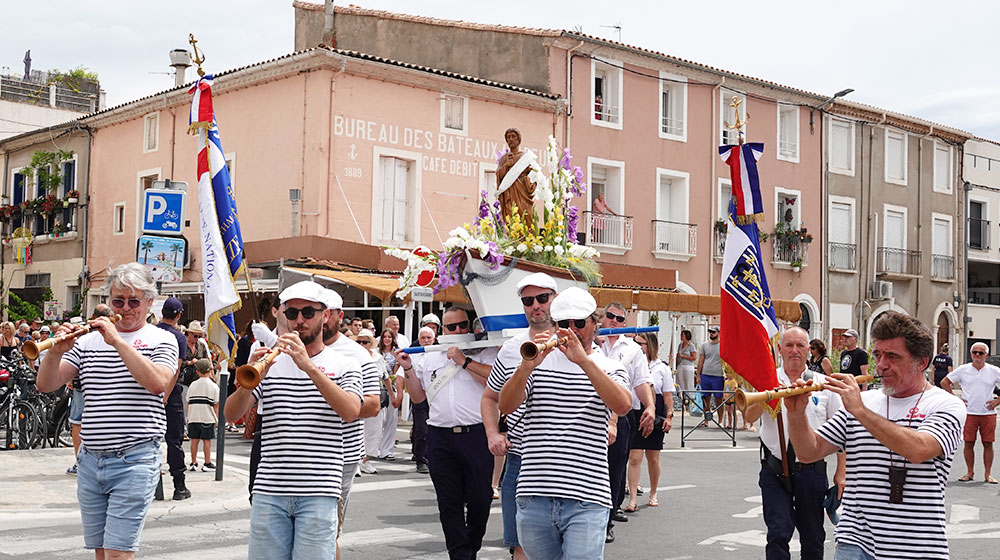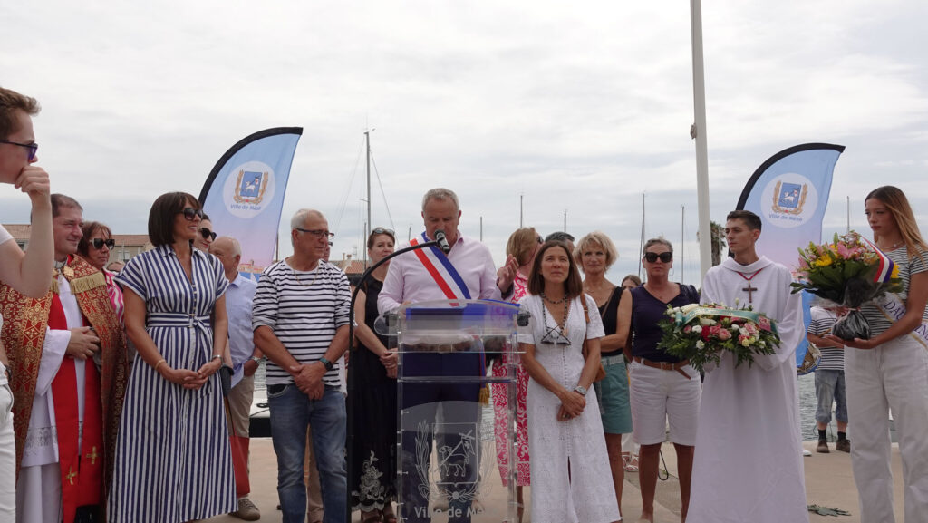 La cérémonie a débuté à la chapelle des Pénitents, avant de se poursuivre en musique par un défilé jusqu’au port au son du groupe de musique traditionnelle Lou Son D’aqui.