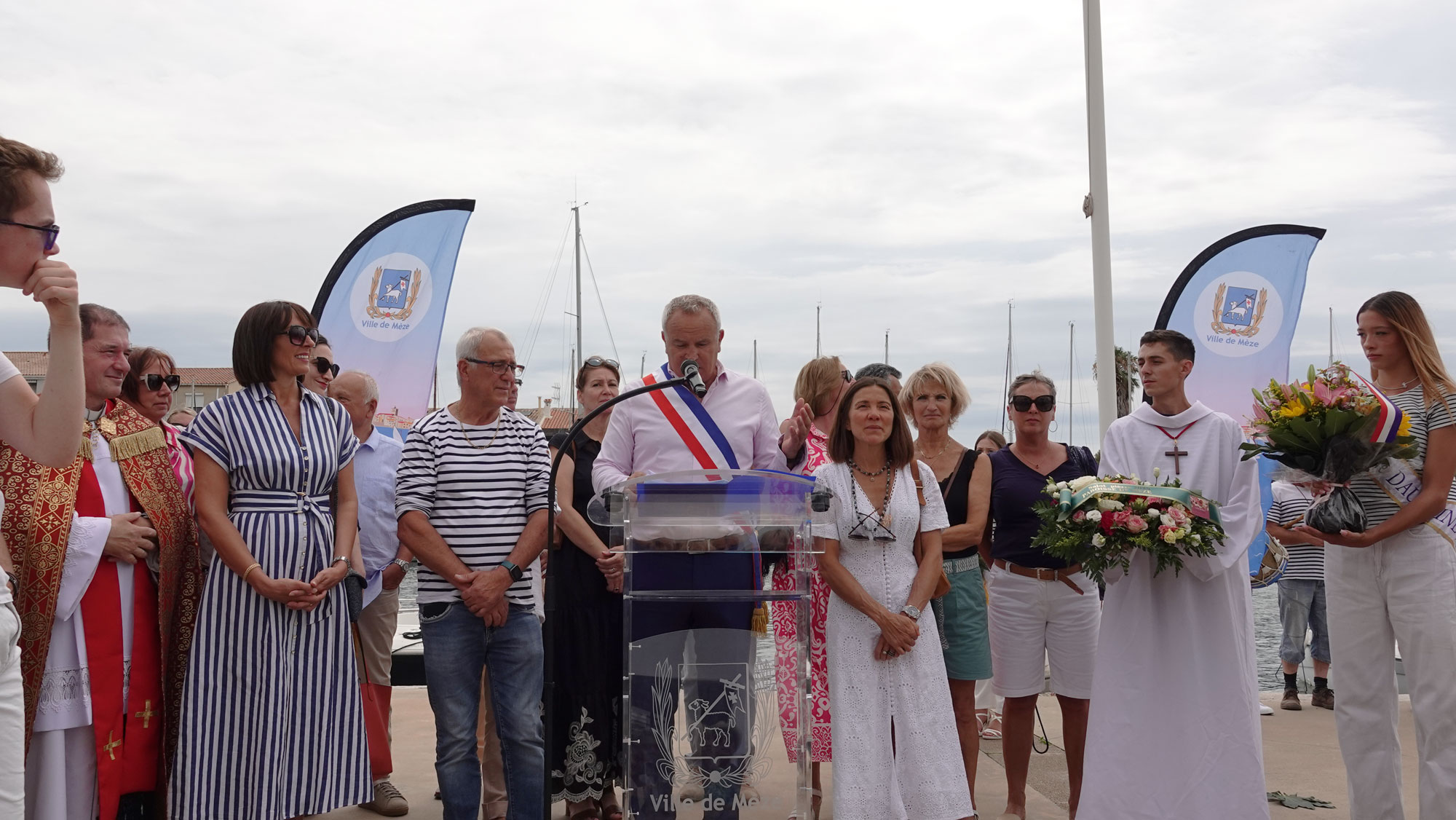 Dimanche 6 juillet, Thierry Baëza, maire de Mèze, Manon Bouquin, députée de la 4e circonscription de l’Hérault, Audrey Imbert et Christophe Morgo, conseillers départementaux, Ève Gimenez-Silva, adjointe au protocole, les membres du conseil municipal, le curé de Mèze, le lieutenant Philippe Charbonnier, chef du centre de secours des sapeurs pompiers de Mèze, Luc Jeanjean, patron de la SNSM et son équipage, les représentants des pensionnés de la marine ainsi que de nombreux plaisanciers ont honoré les traditions des confréries du Bassin de Thau à l’occasion de la fête de la Saint-Pierre, dédiée aux pêcheurs.
