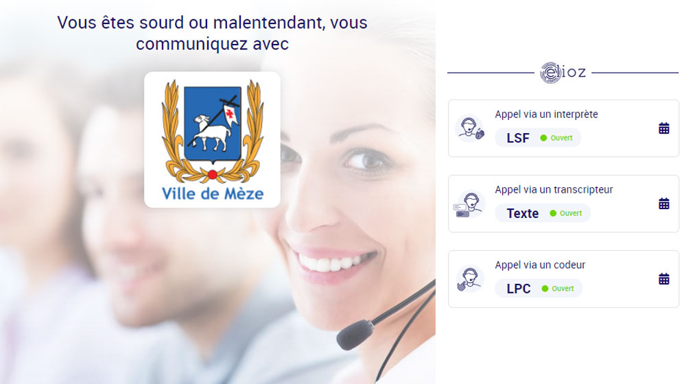 Un accueil en mairie pour les sourds et malentendants23 août 2024Mèze actu Vous êtes une personne sourde ou malentendante et vous allez contacter la mairie de Mèze. Que vous communiquiez en LSF, Texte ou LPC, vous pouvez choisir votre mode de communication ! Pour en savoir plus, regardez la vidéo : Accès au service : Accédez au service d’accueil sourd – malentendant Article précédent Le rendez-vous de la rentrée : la fête des associations Article suivant Effarouchement des étourneaux les 26, 27 et 28 août