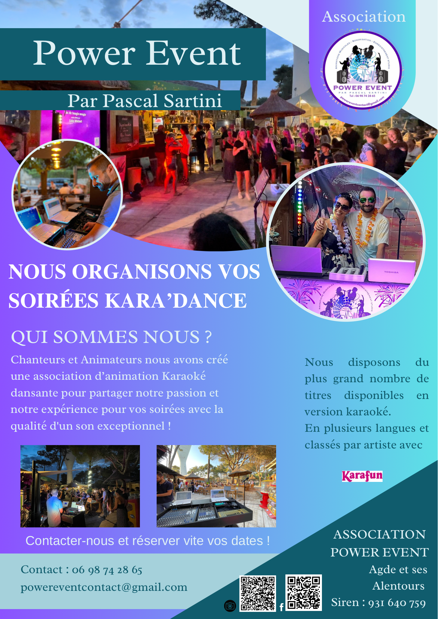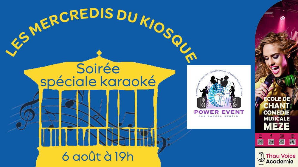 Ce mercredi 6 août, le kiosque accueille l’association Power Event pour un Karaoké géant avec la participation de Thau Voice Académie.