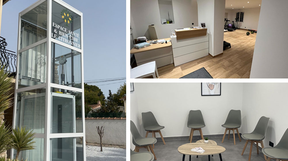 Ce nouvel établissement propose une gamme de services de santé et de bien-être répartis sur deux niveaux. À l’étage, un cabinet regroupe quatre kinésithérapeutes ; le rez-de-chaussée accueille des services d’ostéopathie, d’hypnothérapie-réflexologie, ainsi qu’un cabinet de soins technico-esthétiques. Cet espace est en capacité d’accueillir d’autres professionnels de santé.