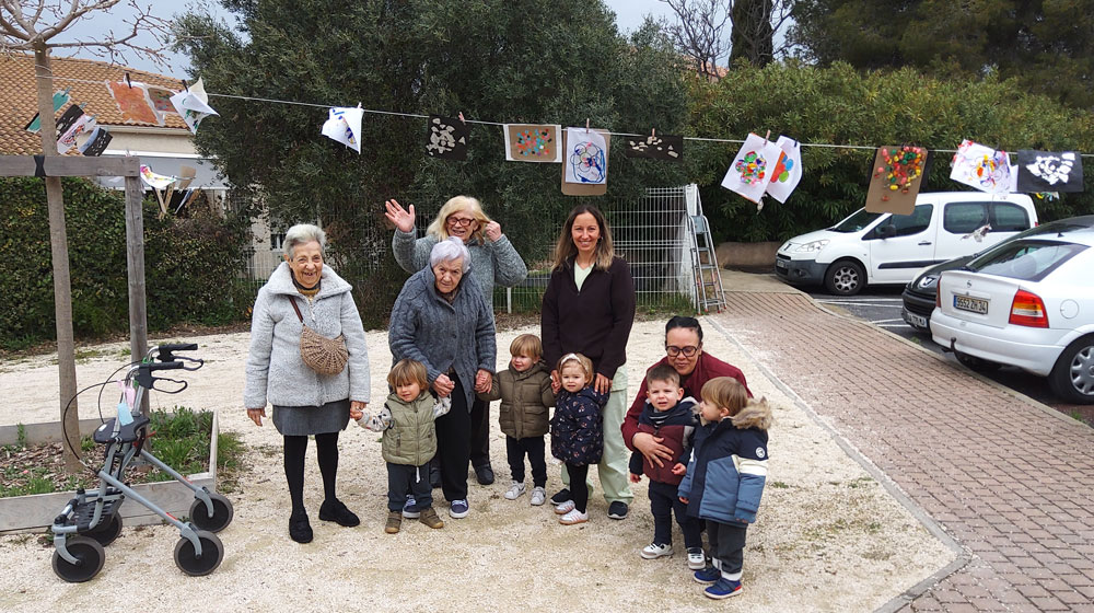Jeudi 20 mars, la crèche Lou Mézou et l’EHPAD Le Clos du Moulin se sont réunis autour d’un projet artistique original : La Grande Lessive®. Cette manifestation culturelle internationale, créée en 2006 par la plasticienne Joëlle Gonthier, invite chacun à réaliser des œuvres sur papier et à les suspendre sur un fil, transformant ainsi l’espace en une exposition éphémère.