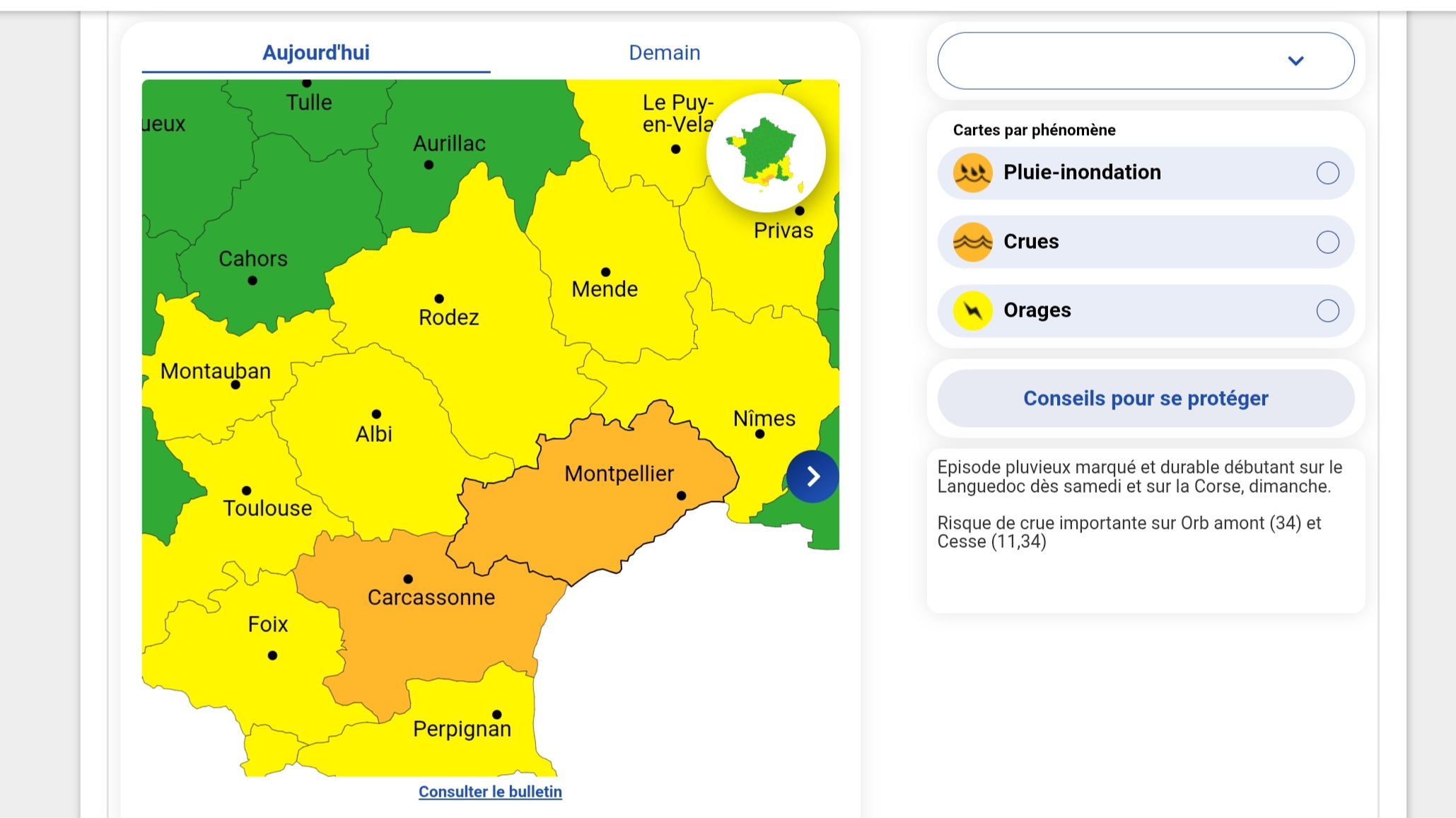 Météo France a placé le département de l’Hérault en vigilance orange pluie inondation de la fin de journée du 17 janvier à la fin de soirée du 18 janvier.
